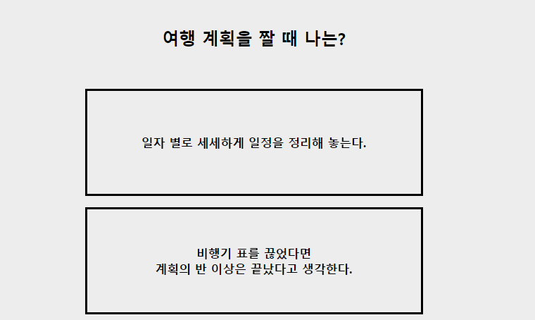 저는 "비행기 표를 끊었다면 계획의 반 이상은 끝났다고 생각한다."로 선택하겠습니다.
