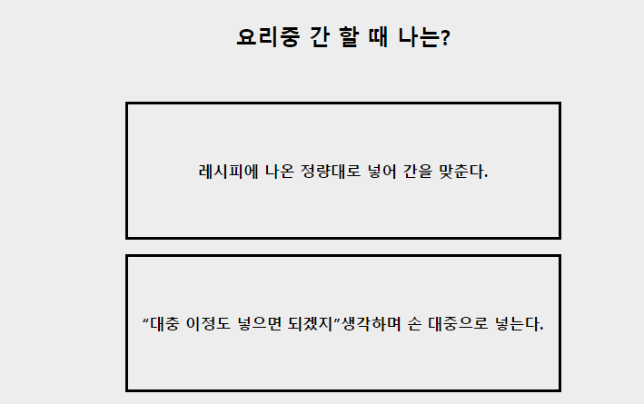 저는 "레시피에 나온 정량대로 넣어 간을 맞춘다.로 선택하겠습니다.